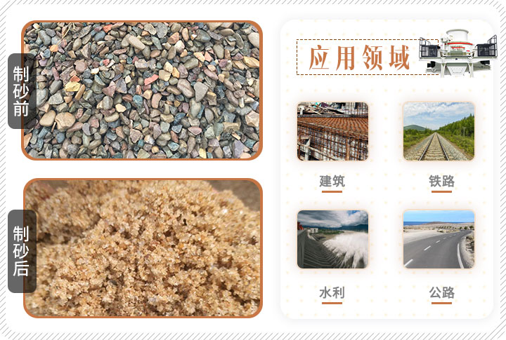 優(yōu)勢(shì):破碎比大、生產(chǎn)效率高,處理能力強(qiáng),目前市場(chǎng)已有時(shí)產(chǎn)幾千噸的固定鵝卵石制砂生產(chǎn)線。