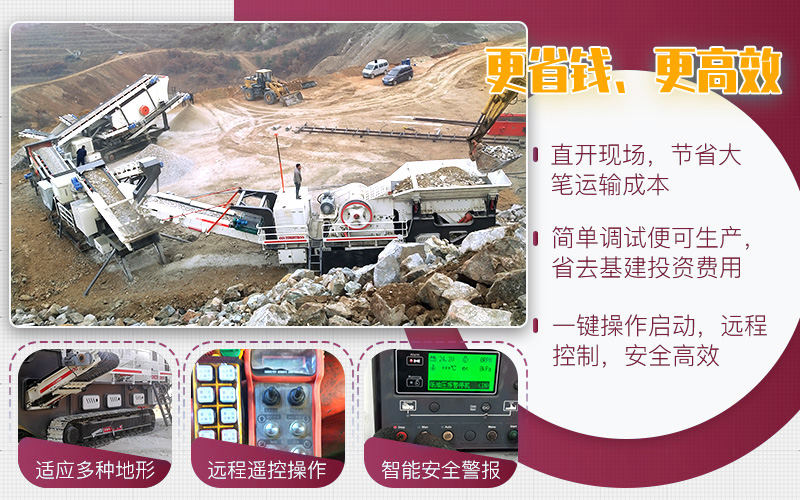 大型磕石制砂一體機是通過輪胎式或履帶式車架與鄂破反擊破、錘破、圓錐破、制砂機、振動篩靈活配置,整體搭配緊湊,油電兩用,配有PLC智能電控箱,可遠程控制,根據客戶的實際生產狀況不同,配置方案多種多樣,比如以下客戶的方案。